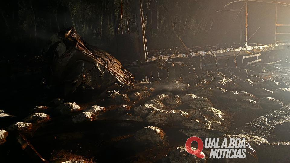 Uma colisão traseira envolvendo dois caminhões provocou um incêndio em ambos os veículos, no final da noite da segunda-feira (09), no km 57 da BR-277 em São José dos Pinhais, na Região Metropolitana de Curitiba. Um dos condutores foi socorrido pelas equipes de emergência e encaminhado para o Hospital Evangélico, na capital paranaense.