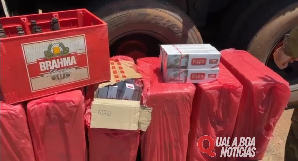 Aparentemente o caminhão estaria transportando vasilhames vazios de cerveja, mas, por baixo das garrafas foram encontrados aproximadamente 22.500 pacotes de cigarros contrabandeados.
