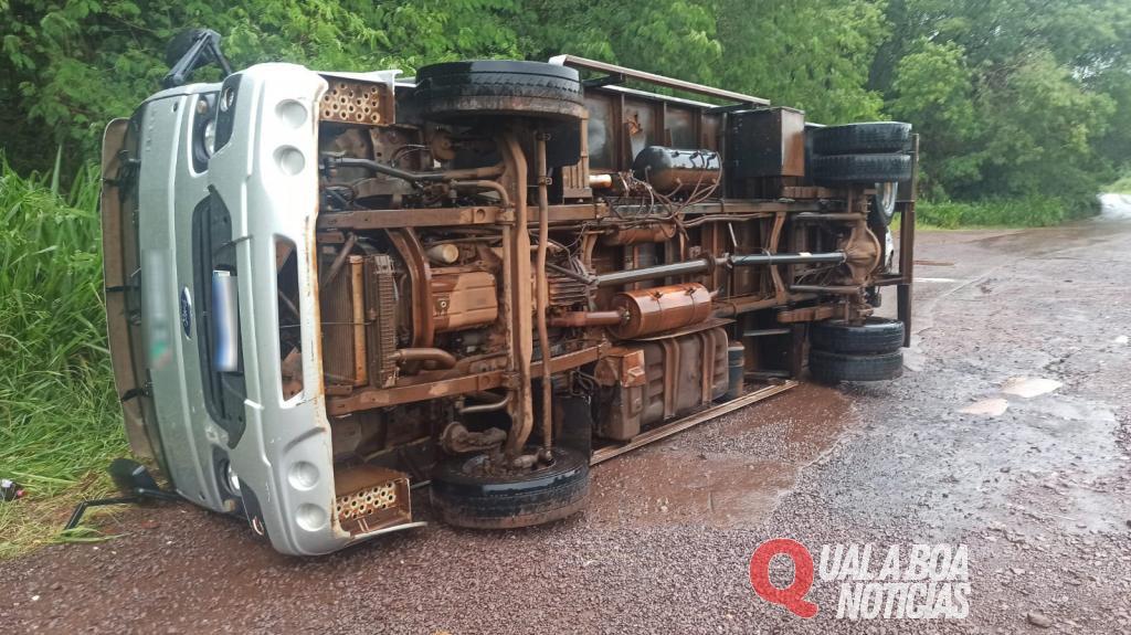 Um acidente envolvendo o tombamento de um caminhão foi registrado no início da tarde desta quinta-feira (19), na rodovia PR-317, no trecho que liga Toledo ao município de Ouro Verde do Oeste. O veículo, um caminhão Ford com câmara fria, com placas do Mercosul e pertencente a uma empresa de Cascavel, transportava uma carga de produtos frios.