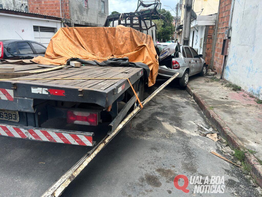 Em uma tentativa de escapar, a dupla abordou um caminhoneiro que estava fazendo uma entrega na rua Nelson Mandela, obrigando-o a entregar seu caminhão. O veículo foi então levado pelos criminosos em direção à rua Guanabara, no bairro Novo Reino, onde a fuga se tornou ainda mais caótica, com várias colisões envolvendo outros carros.