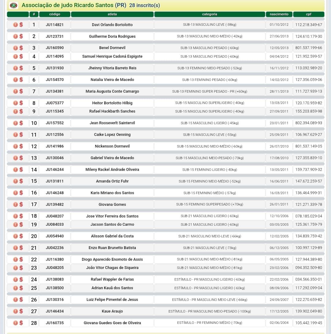 E um agradecimentos especial a secretaria de esportes dando total suporte as competições dentro do estado, e Sanepar que patrocinado agua para os judocas “ Comenta Ricardo.