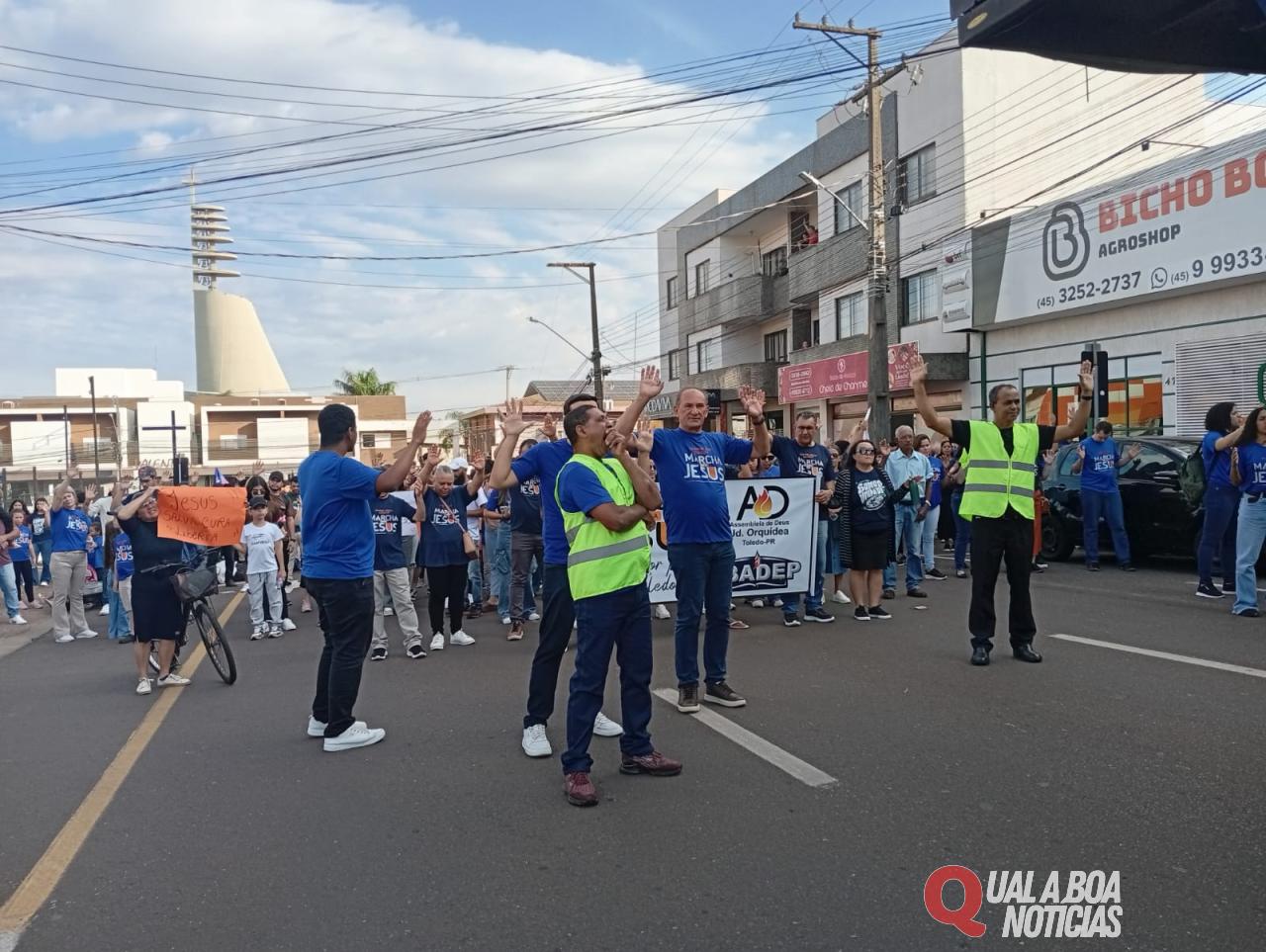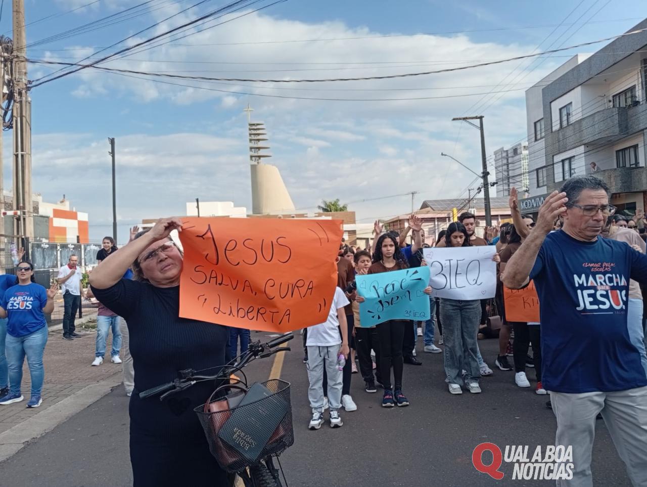 A concentração teve início na Praça Willy Barth, com a participação de crianças, jovens, famílias e lideranças religiosas, que seguiram em caminhada pelas principais ruas da cidade. Com louvores, palavras de esperança e declarações de fé, os participantes marcharam com alegria e espírito de unidade, intercedendo por Toledo, pelo Paraná e por todo o Brasil.