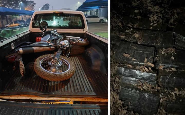 Foram também apreendidos uma camionete VW/Amarok e uma motocicleta Bros que estavam sendo utilizadas no transporte da droga. Todo material foi encaminhado a delegacia da Polícia Federal de Guaíra.