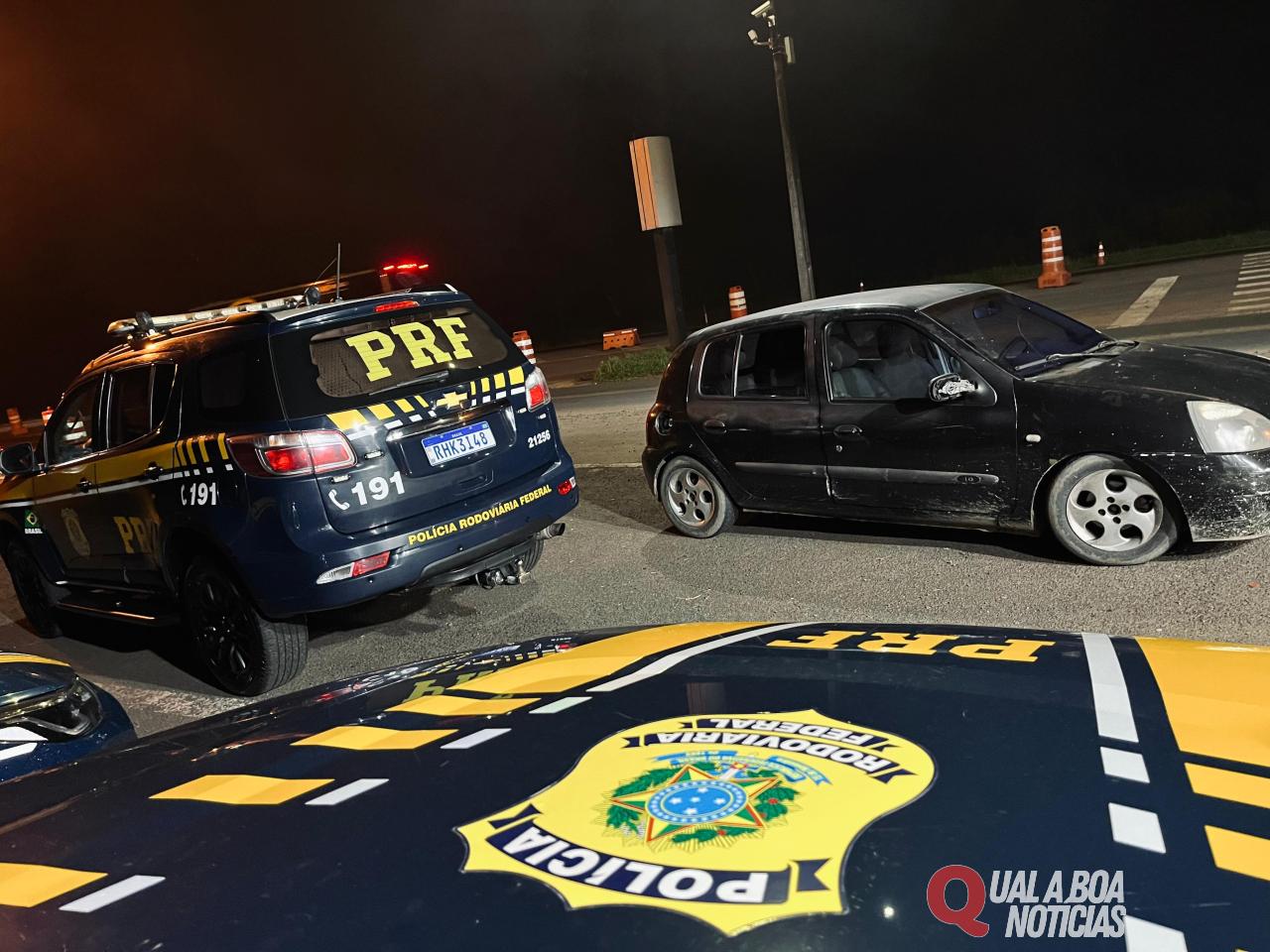 Por volta das 23 horas, policiais rodoviários federais deram ordem de parada ao veículo, com os quatro ocupantes, que teve comportamento atípico à ordem policial: demora para parar e movimentação anormal dos ocupantes. Ao consultar a documentação, os policiais descobriram o registro de roubo do veículo.