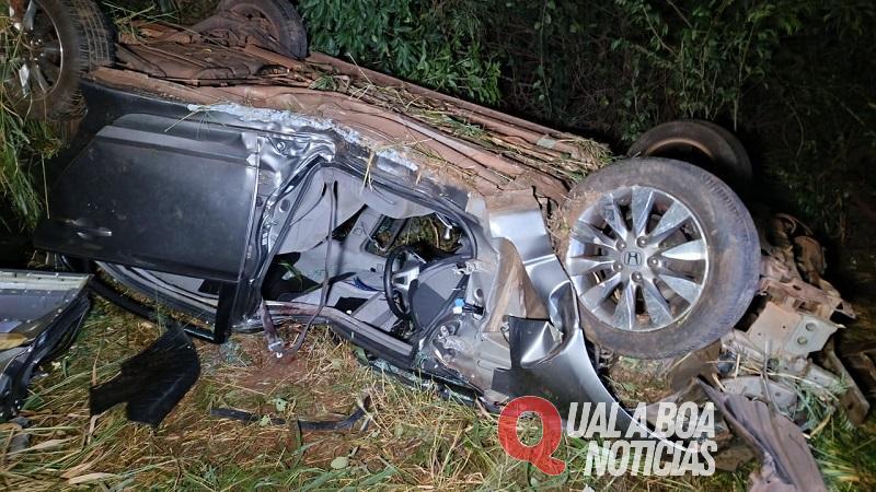 Na noite desta segunda-feira (26), um grave acidente tipo capotamento foi registrado na rodovia PR-317, no trecho entre Toledo e Ouro Verde do Oeste. A ocorrência se deu na altura do km 395 e envolveu um automóvel Honda Civic, com placas do Mercosul, ocupado por um casal e duas adolescentes.